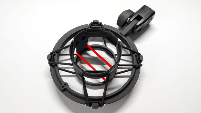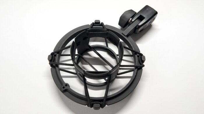そのような場合はマイクホルダーにあたる部分をショックマウントと呼ばれる部品に交換することで、マイクスタンド側からの振動がマイクに伝わりにくくなり、意図しない音が入ってしまうのを防ぐことができます。