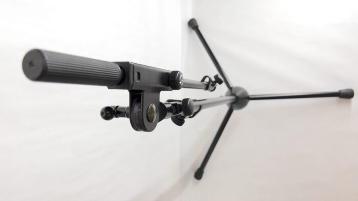 AT4040を手で持って使うと大きなノイズが乗ってしまうため、マイクスタンドも必要です。